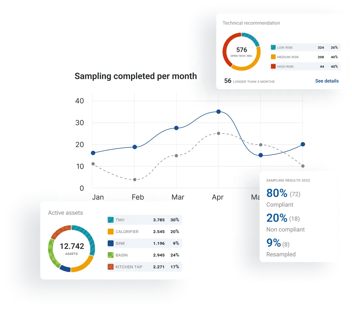 Our water hygiene software assures you to comply with every aspect of the PSL and PPCL guidelines. Showing when to perform tasks, if non-compliance tasks have been followed-up or not. We even take it to the next level by using reminders and alerts to notify when tasks haven't been performed yet. Assuring you take action and guarantee a Legionella-safe and compliant environment.