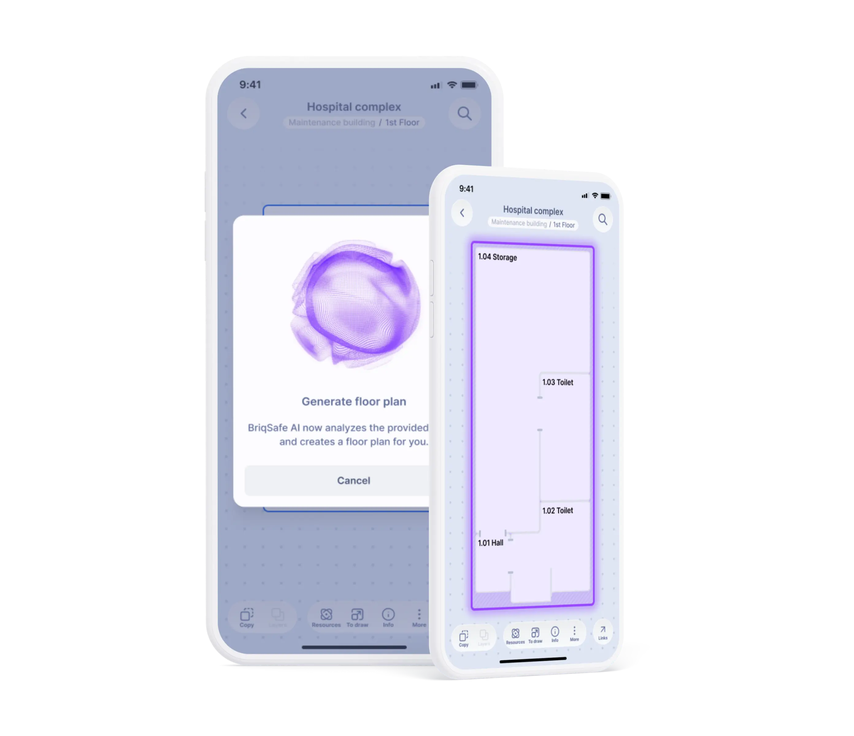 Upload an existing building drawing and let AI structure it into a live, editable floorplan. Detect layout zones automatically, create structured floor hierarchies, prepare the space for asset placement and reduce manual redrawing time.