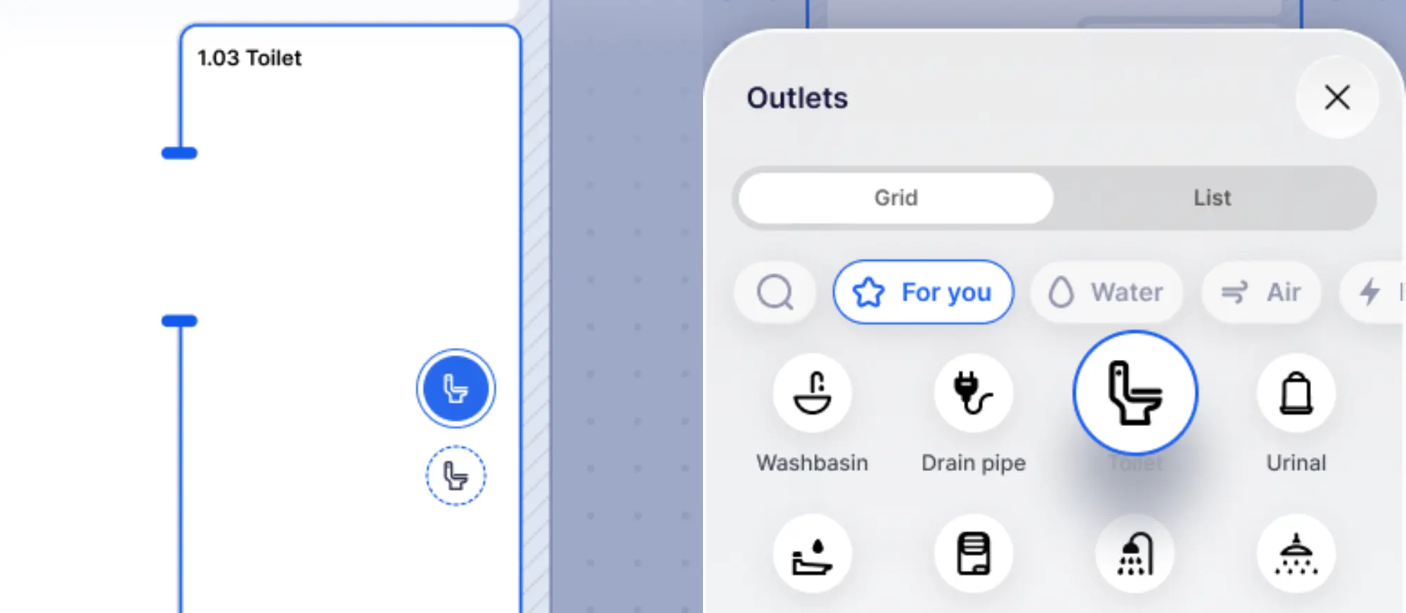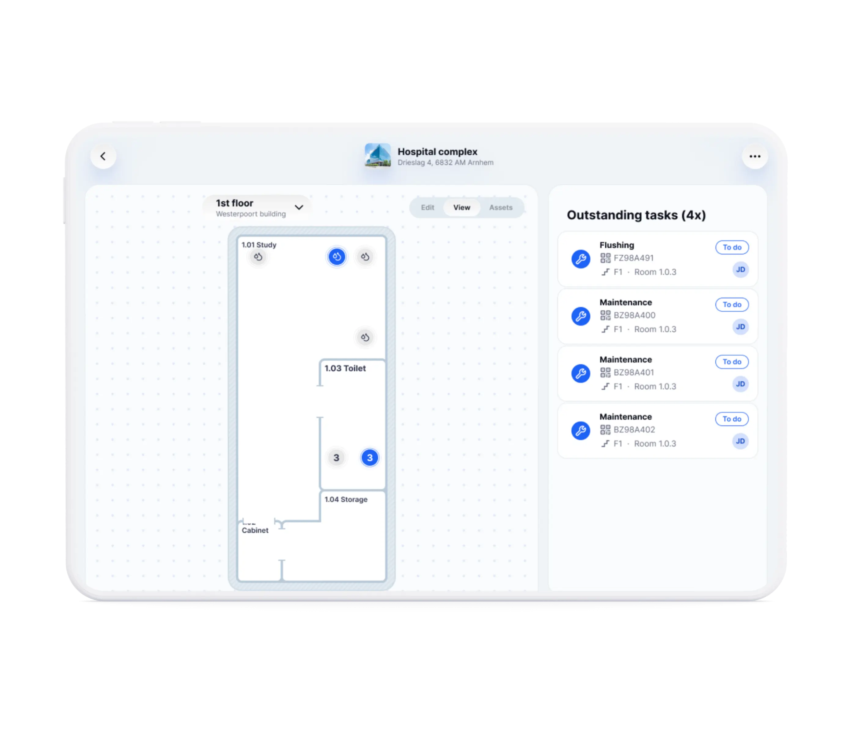 Create live floorplans using AI and drag and drop assets directly onto the layout. Link outlets, tanks, calorifiers, and pipework to structured asset records. Every finding is tied to a real location. No ambiguity. No disconnected notes.